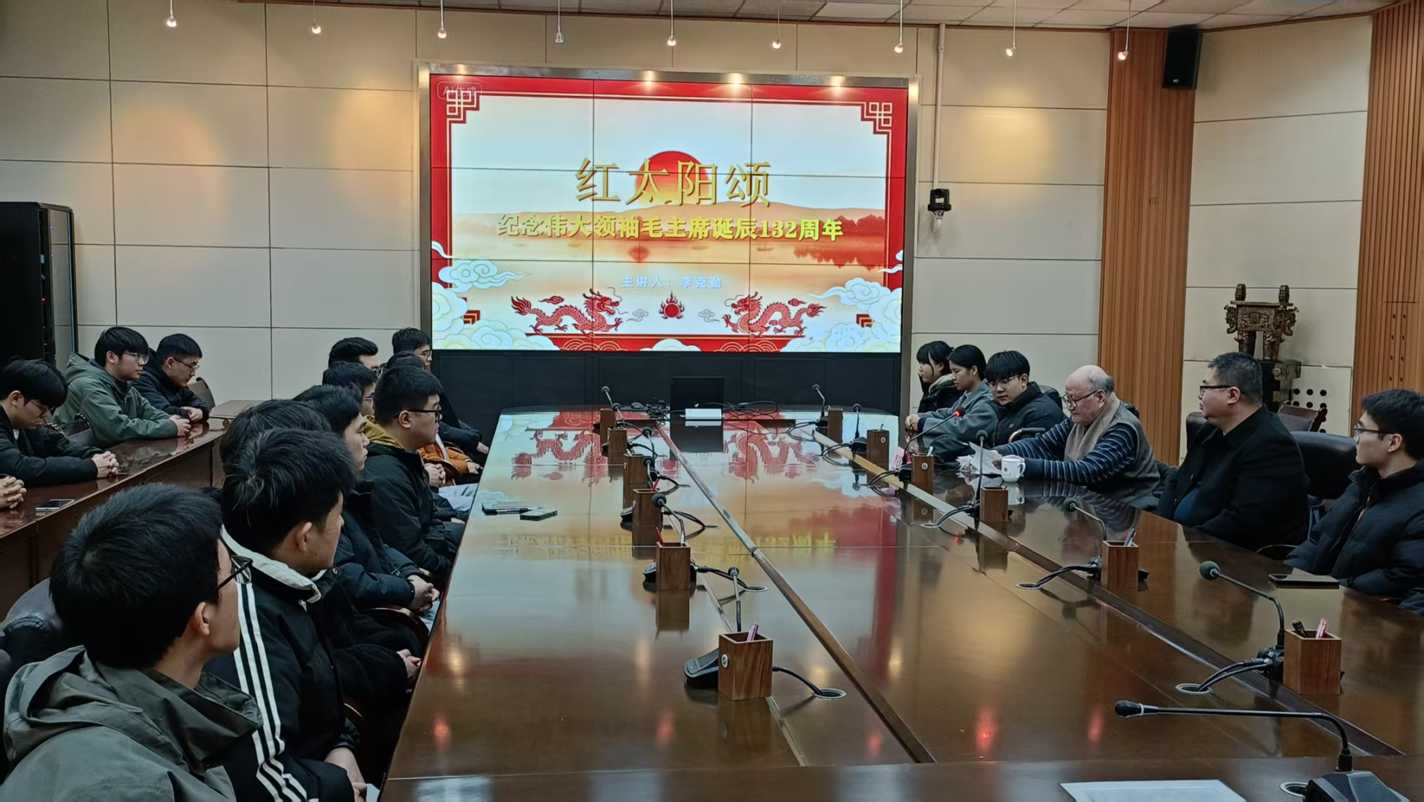 12月26日下午,在雁塔校區(qū)會(huì)議中心第二會(huì)議室,離退休教職工李克勤書(shū)記以“紅太陽(yáng)頌”為主題,在紀(jì)念偉大領(lǐng)袖毛澤東主席誕辰132周年之際,為機(jī)械工程學(xué)院研究生代表奉獻(xiàn)了一場(chǎng)兼具思想性、指導(dǎo)性與趣味性的分享會(huì),由離退休工作處副處長(zhǎng)趙海濤主持。